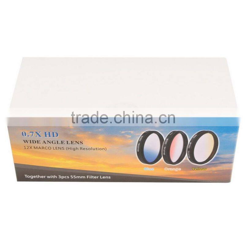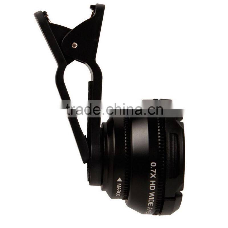 3in1 Clip-on Camera Lens Kit Fot Mobile Phones Tablets --0.7X HD Wide-angle Lens And 12X Macro Lens Plus 3 Colored Lens Filter