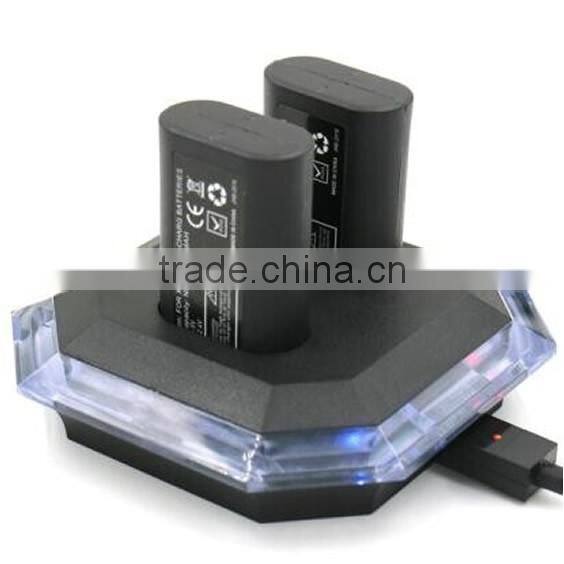 - Package contents : Charging dock with built-in LED indicator light + 2 rechargable battery packs + USB charge and play cable with LED indicator