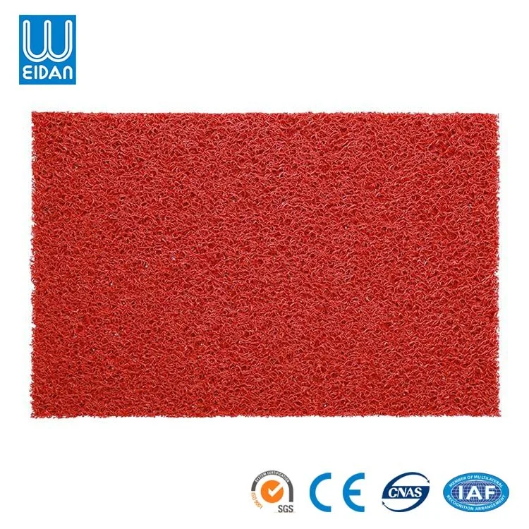 PVC cushion coil mat is also named pvc loop mat. The mat's vinyl looped construction scrapes and cleans dirt while filtering moisture through open structure. Open loop composition of the long run matting helps hide dirt and moisture below the surface, maintaining an attractive appearance.