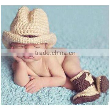 Baby photography props wool winter cowboy hat and sets for 0-6 months baby made in china