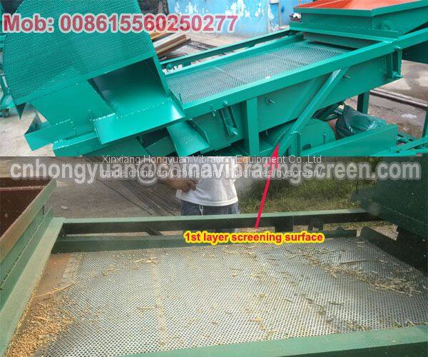 There are three screen layers of mobile buckwheat paddy wheat grain seed cleaning plant. At first,the front screen will sort out the dust and similar impurities. Then the main air blower will blow it out at last part. First screen layers is for the big impurities, second decks for cleaning grain, third decks is for broken grain and sand etc.