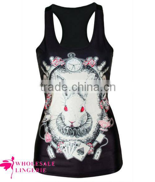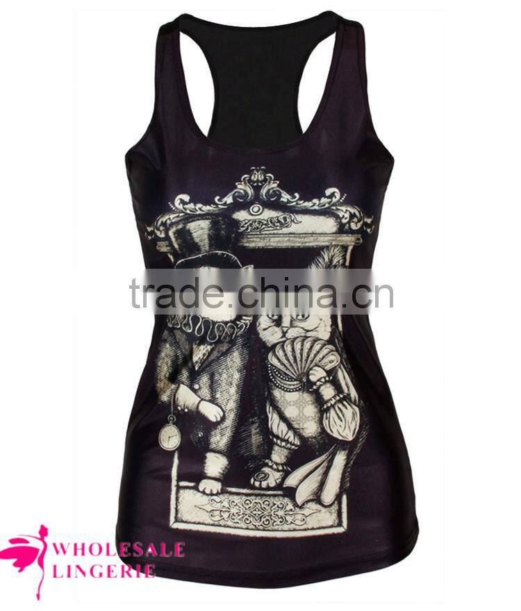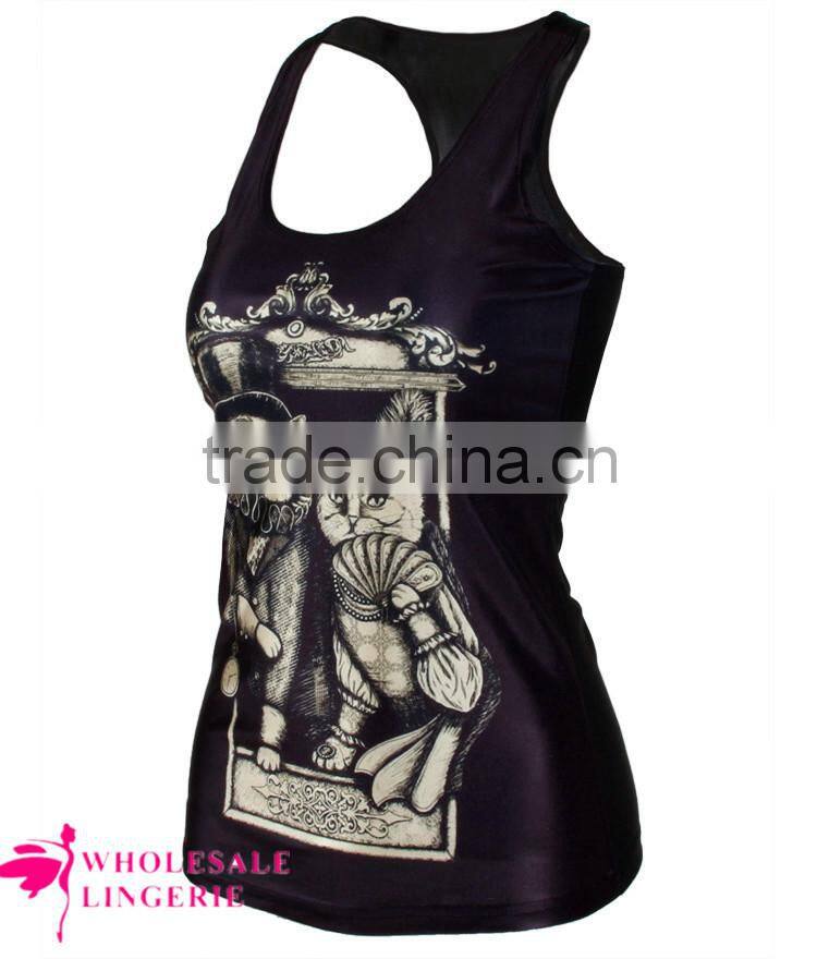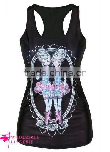 product name : | Wholesale Pinky Ladies With Corsets Printed Black stringer tank top for women |
