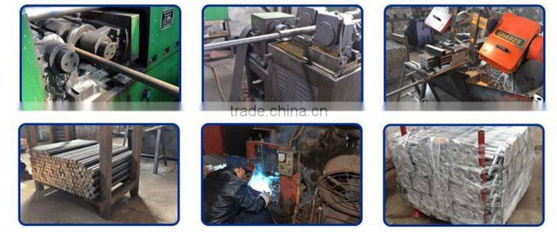 34mm or 38mm OD (thread), fits outside 48mm OD tube, more stable than hollow one. Heavy duty steel construction. Base plates provide extra stability. Enables safe use on uneven ground. Galvanized for long lasting protection. 600mm in total length. It is also known as a screw jack. |