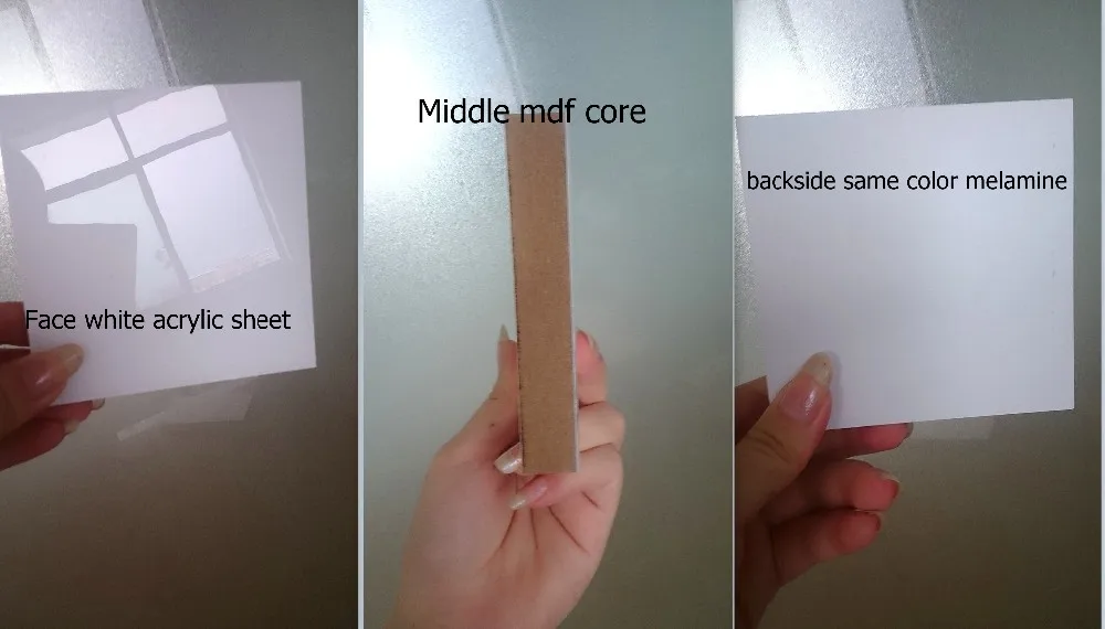 The base material E1/E2 grade mdf ,pressing acrylic sheet on the top .