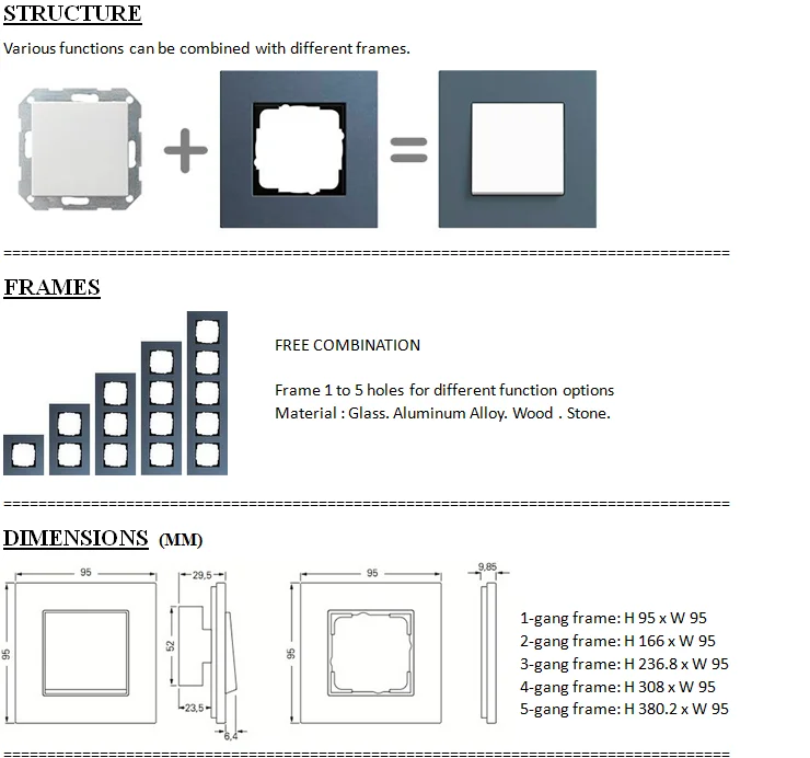 EU Standard Touch Light Switch Glass German Wall Switch 95 * 95 MM