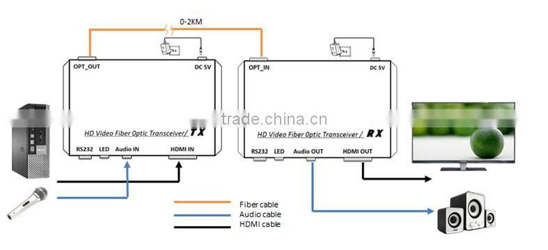 Newest 2KM HDMI Over Fiber Converter With RS232 Signal Transmission up to 1080P@60Hz