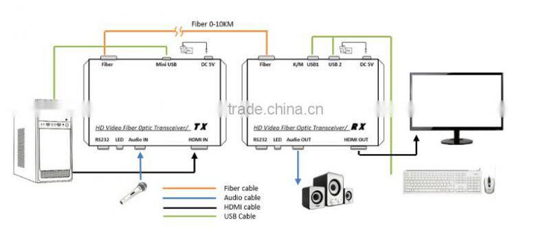 - Transmits HDMI video signals up to 10km over one fiber optic cable;