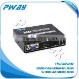 - Supports convert CVBS video and R/Laud ioin to complete HDMI and VGA+ stereo audio.