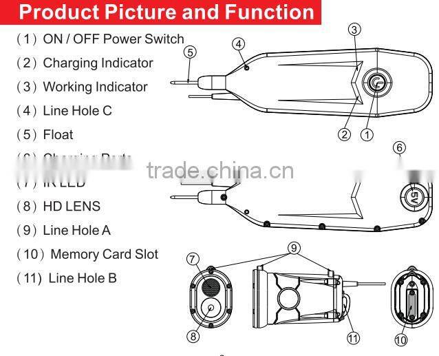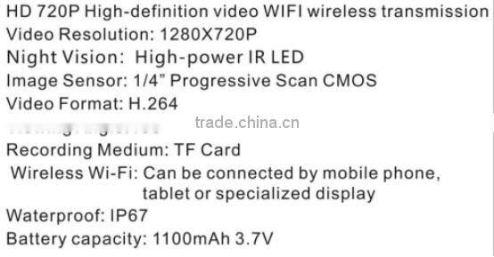 IP67 wide angle degree underwater fishing video camera without screen wifi camera