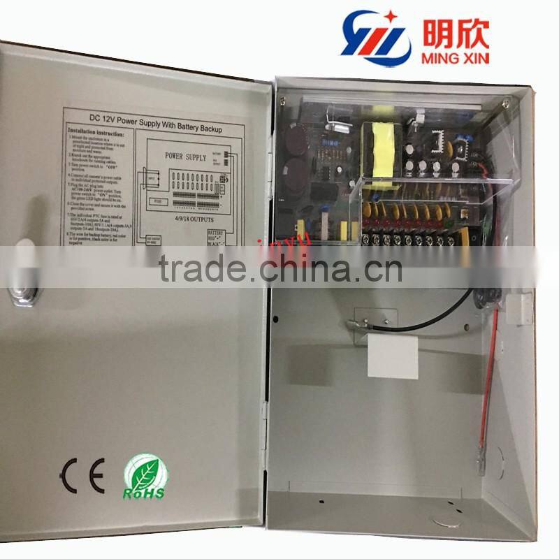 DC 12V10A 9ch output 60W multiple Power Supply with battery backup for CCTV camera system metal box switching power supply
