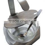 Glass Sugar Bowl With Stainless Steel of Base and Spoon