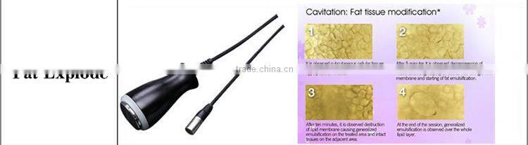 Powerful shock wave head emits frequency of 40KHZ ultrasound waves into the human body. Which penetrates into human fat cells causes vibration impacts and movement in the fat cells and in turn can effectively burn calories, reduce water retention in fatty tissues, and causes the fat cells to shrink. In addition, the strong acoustic vibration that causes cells to produce a strong vibration impact, cause fatty cells to bust instantaneous,thus reducing fatty cell numbers cells, allowing the removal of the fatty cells.