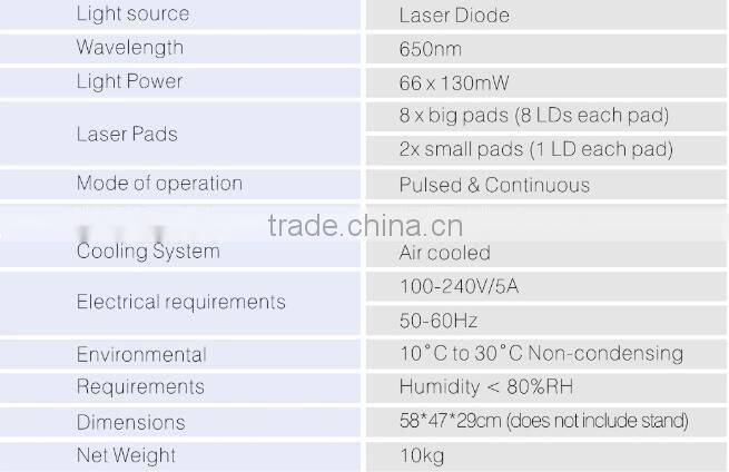2. Apply high power laser diode lamp (<=130mw each), deep penetration.