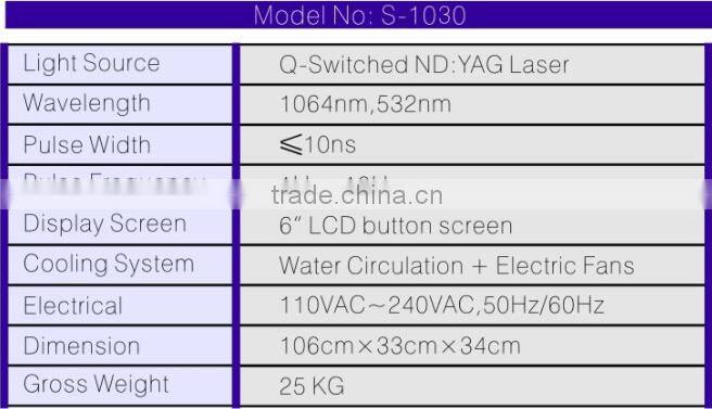Professional Tattoo Removal Laser 10hz Q Switched Nd Yag Laser For Tattoo Removal