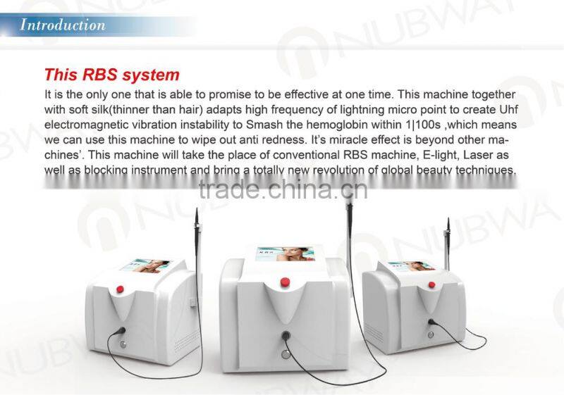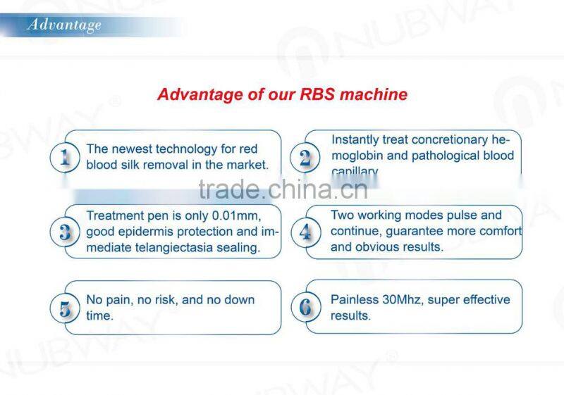 The high frequency system can be used to treat all kinds of redness. Such as spider-web like veins, linear redness, filamentous redness, genetic redness, naturally occur redness, flat cherry-like vascular tumors. The treatment result can be seen immediately, no swelling, no scab and never rebound. Compared to other instruments, the treatment process is easy, efficient, and comfortable with out affecting the normal life and work of your clients.