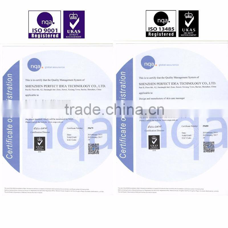 Shenzhen Perfect Idea Tech. Co., Ltd. We are specializing in the production and sales of a wide range of home-based beauty and personal care products which reflect our company motto BE PERFECT. We advocate home beauty as a fresh healthy and a new experience for beauty alternative. Physical therapy of medicine is the technical base for our series beauty instruments such as ultrasonic, galvanic, photon therapy. As the pioneer of of Bio-wave skin care technoloy, we assure it will surprise all of customers.