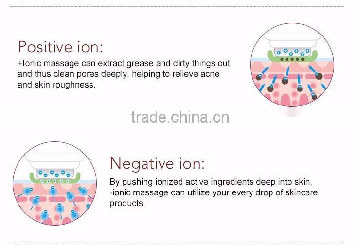 1) It can form a weak electric field between skin surface and germinal layer, temporarily break the skin barrier layer, remove dirt from pores with the principle of [Opposites Attract] and conduct essences of different functions (such as acne removing, moisturizing, whitening and wrinkles resisting) into deep skin with the principle of [homogeneous repellent]. Replenish effective ingredients into skin which may accumulate surrounding skin cells as [ion cluster], promote cells to constantly absorb essences with the absorbent concentration several and dozens times of higher than extending or oral take.