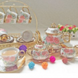 European Style Ceramic Tea Set With Plated Flower