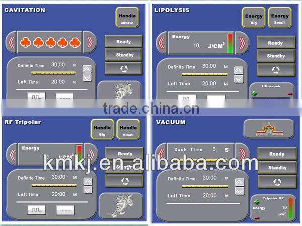 1. Lipolysis handpiece combines Cavitation and Monopolar RF in one which can working at same time bring better result, this our company unique design.