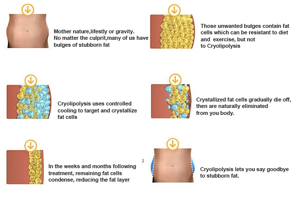 4. body, and whilst destroying the fat cells the other tissue was left unaffected e.g. skin, muscle mass and nerve fibres.The cold permanently damages the unwanted fat cells. Several days after the fat removal procedure, the targeted fat cells begin a process called“apoptosis” and start to shrink. The body slowly absorbs these damaged fat cells, eliminating them naturally through the live.