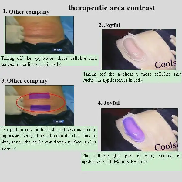 Joyful cryolipolysis machine has mastered the core technology of measuring and controlling temperature,accuracy rate is 0.1 °c ,so there won't be any bruise in the process of weight loss.
