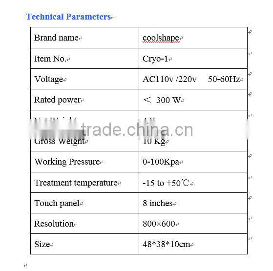 Joyful cryolipolysis machine has mastered the core technology of measuring and controlling temperature, temperature range from -15 to +50 centigrade,accuracy rate is 0.1 °c ,so there won't be any bruise in the process of weight loss.