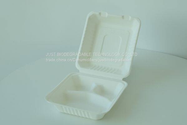 JUST Biodegradable Sugarcane & Bamboo Lunch Box Clamshell H9"-3