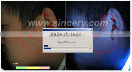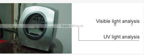 The System has sthe stability of the standard white-light (RGB) shooting system plus smart skin analysis software, which can accurately assess age of the skin, and the combined with special UV light shooting technique, the system can easily evaluate the future development of skin. Once the digital imaging system emits visible RGB light and safe UV light to the skin, various chromophores in skin cells respond to the light differently, send back remitted light.