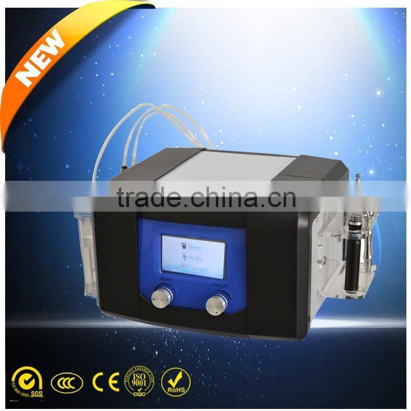 This new product is the multi-functional beauty equipment. It has five function handls which can tighten skin, remove acne, remove blackhead, freckle removal , tender skin whitening, moisturizing and clean skin. Hydro dermabrasion utilizes the natural healing powers of water and oxygen to effortlessly exfoliate the skin without the use of hard crystals or abrasive textured wands, generating deeply hydrated and healthier looking skin.