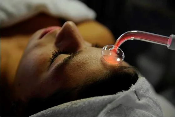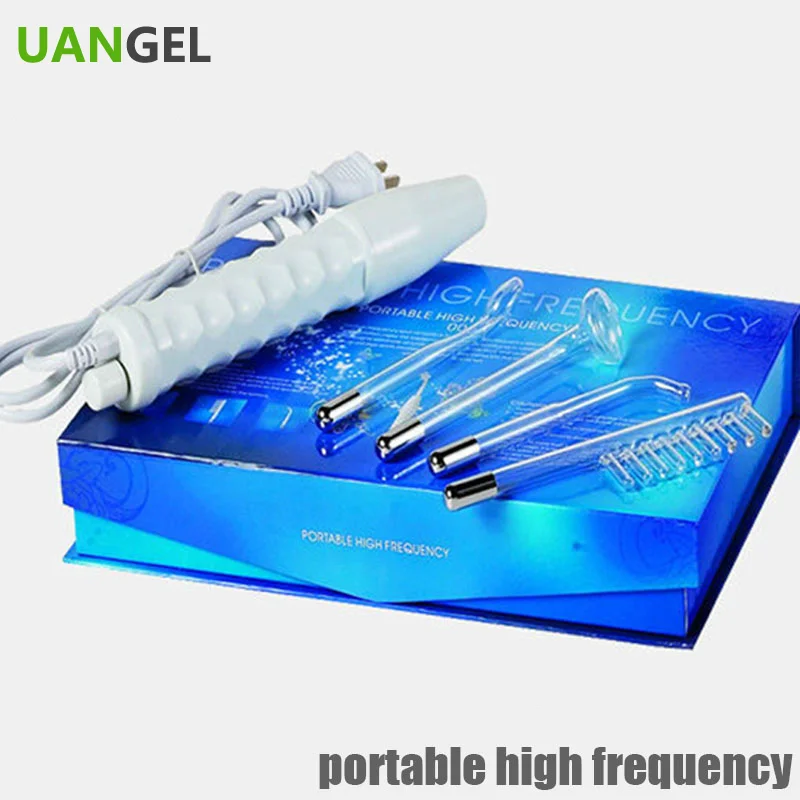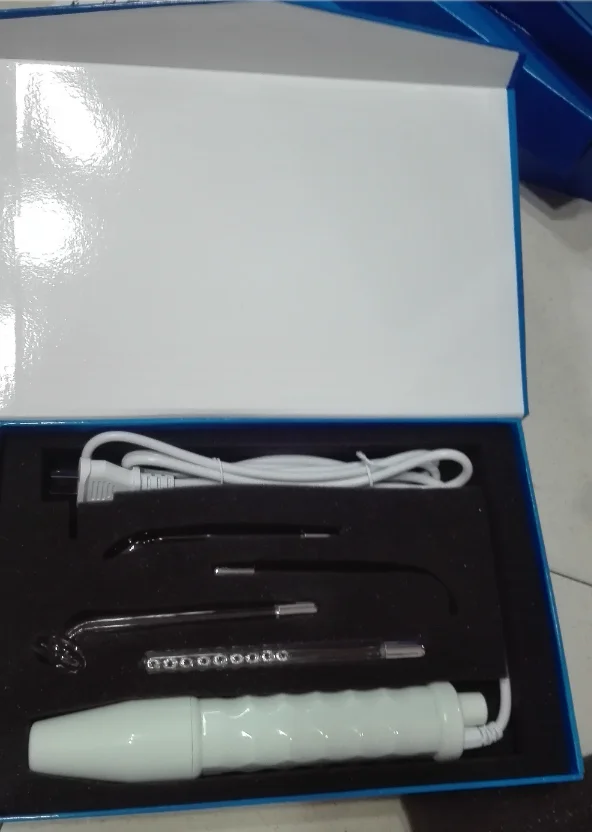 Four Glass electrode Umbrella like electrode control: It is used for general skin treatment, the light is orange. Drop like electrode control: It is used to cure the local inflammation skin, the light is violet. Pectination electrode control: Improve the blood supply of the skin of the blood, prevent lose hair, the light is orange. Spoon like electrode control: It is used to the gentle skin treatment, the light is orange.