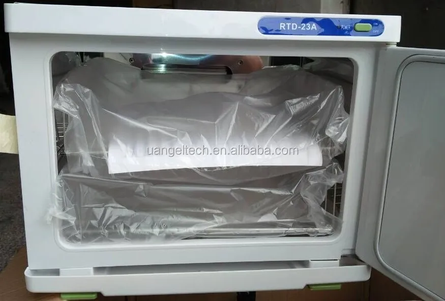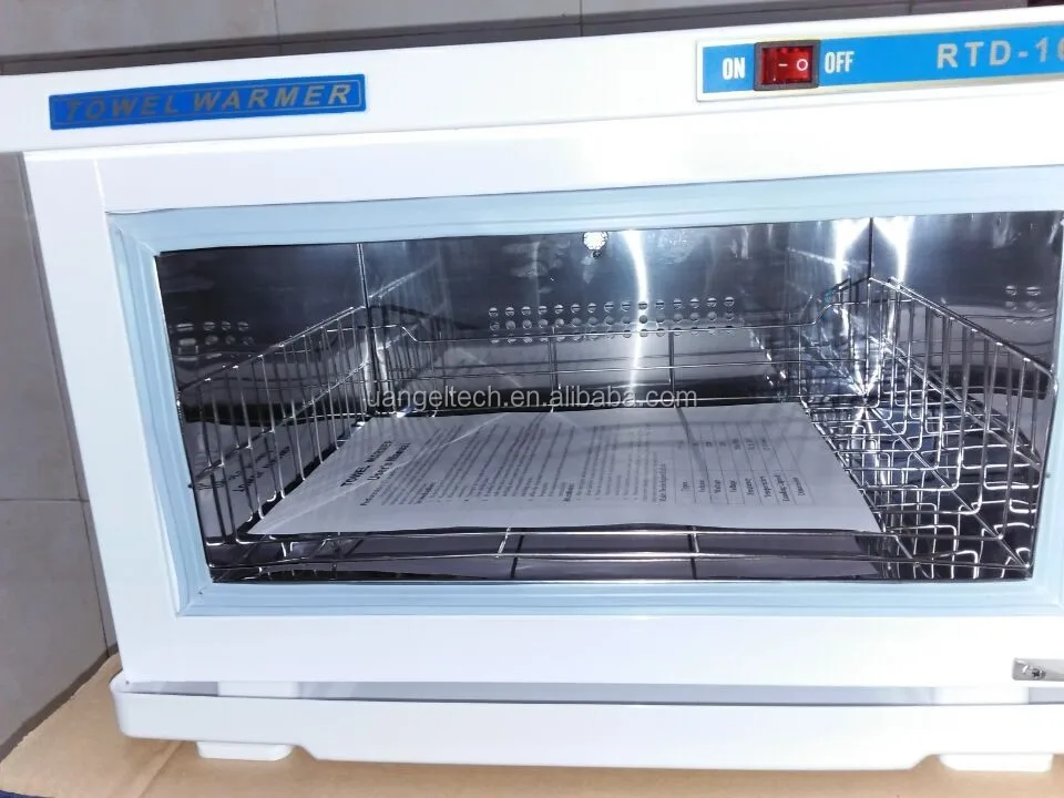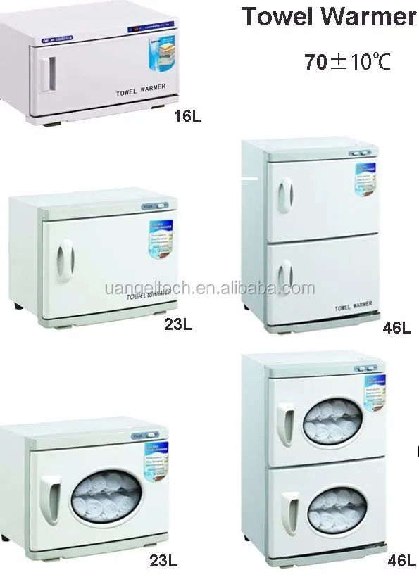 This towel cabinet holds approximately 3 dozen towels at full capacity and keeps towels warm at constant 82-85 Celsius degree for hygienic treatment, with UV lamp for sterilizing