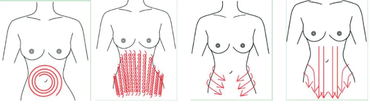 1.From small to large, by clockwise direction, circling arrond the navel, can help peristalsis of the large intestine.
