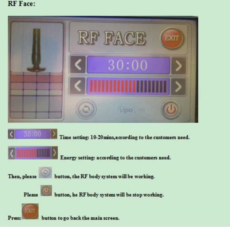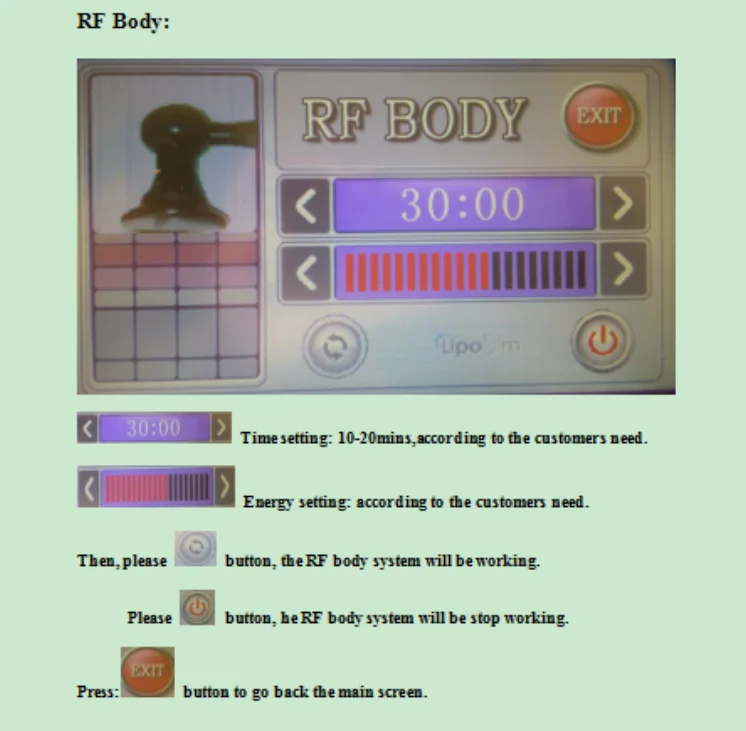 Please choose “RF Body” or “RF Face” to enter the next screen.