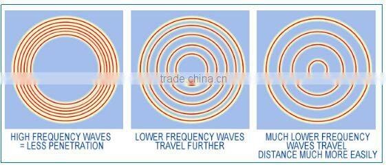 Increasing frequency affects the depth of wave penetration (as lower frequency waves travel further than higher frequency waves). As can be seen below high frequency waves travel less distance (below are depictions of different wave frequencies on a gold film)