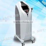 MBT (Mega Beauty Technology) 2015 hot selling 808nm diode laser hair removal machine /hair removal speed 808 can effectively penetrate to the targeted tissue, and the appropriate laser pulse time can ensure the accumulated energy to break the targeted tissue without damaging the surrounding tissues; the appropriate energy density can provide enough energy output in a certain time to break the targeted tissues without damaging the surrounding tissues; the appropriate epidermal protection measure can ensure enough damage of the targeted tissues without damaging the surrounding tissues; the multi-pulse laser of this semiconductor laser hair removal series chooses the mode of a relative low energy density to heat mascara to 75℃, and maintain this state with the hand tools sliding under 10Hz, then both the mascara and stem cell growth will become inactive, reaching the goal of permanent hair removal. professional laser hair removal machine for sale