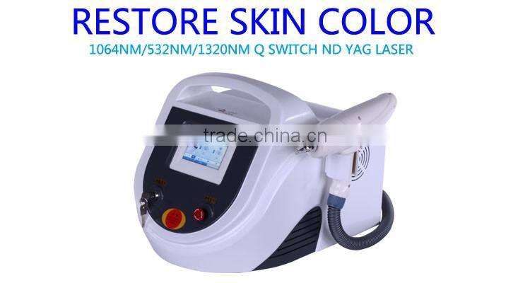 Nd yag Laser tattoo equipment adopts the Q swithch mode, which makes use of the instantaneous emitted laser to break the pigment in ill structure. That’s the laser instantaneous emit theory: centralized high energy emit suddenly, which makes laser of settled wave band instantaneously penetrate through cuticle to the ill structure in 6ns, and break the relevent pigments quickly.
