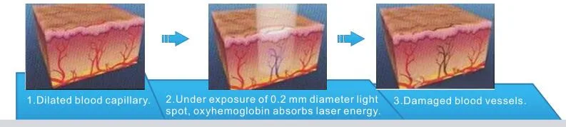 After absorbing laser energy, oxyhemoglobin produces thermal energy and spreads to vascular endothelial cells through conduction mechanism. In consequence, blood vessel wall is damaged and facial vascular will be treated.