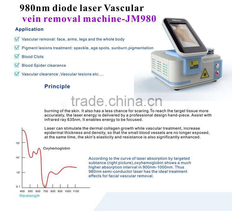980nm laser is the optimum absorption spectrum of porphyrin vascular cells.Vascular cells absorb the high energy laser of