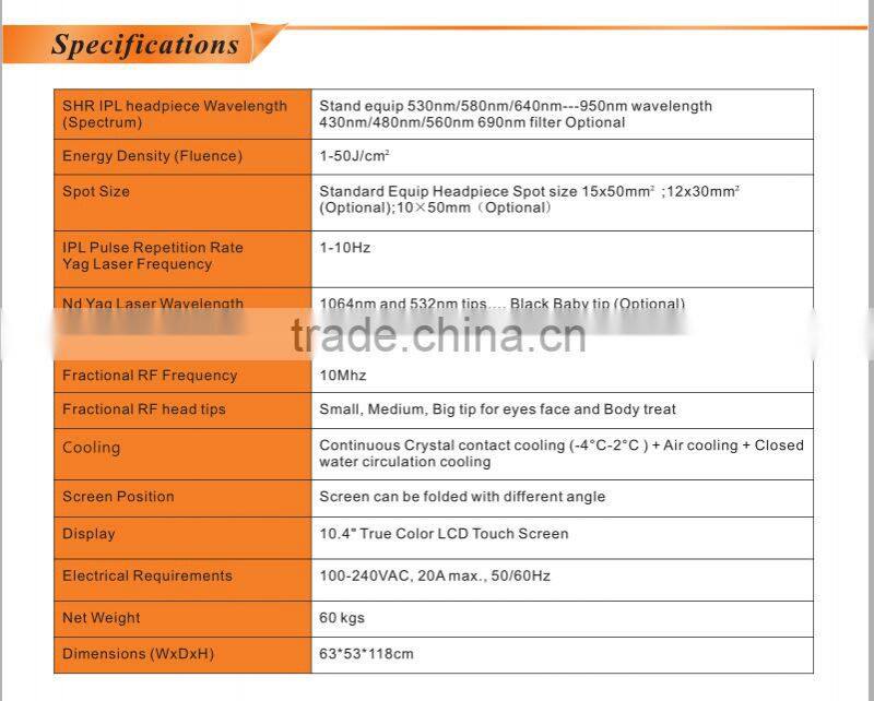 6.2014 Newest Technology Combined SHR IPL/Yag Laser/Fractional RF 3 in 1