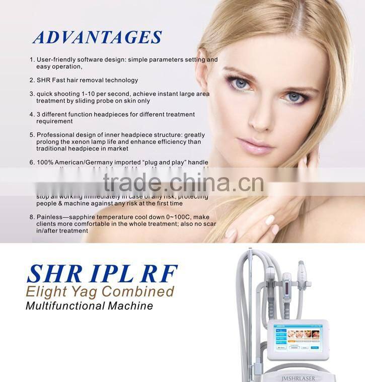 SHR IPL working system: acne removal,vascular therapy,blood vessel removal,pigmentation removal,skin rejuvenation,wrinkle removal,hair removal
