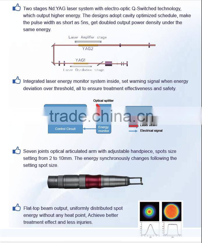 Our products Q Switched nd yag laser machine is TUV medical CE and ISO13485 qualified.