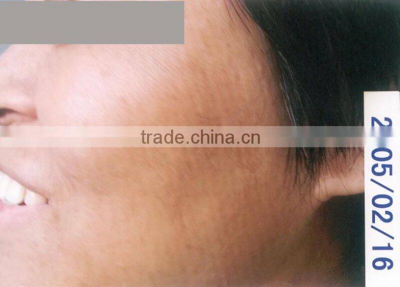 There may be swelling or blood clot under skin, but it will recover in 20 to 60 days, varied with individual’s skin property. Low energy density (small spot) shall be used in the treatment of the brown or red pigment with 532nm wavelength laser. Repeating operation several times if necessary but at least with 2 months interval.
