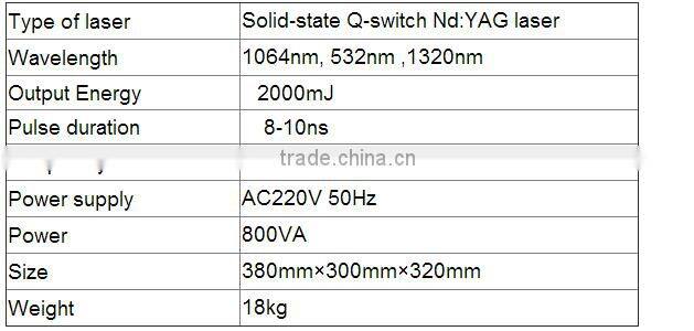 Laser emitted by the system has a strong penetration ability which allows it to reach the deep layer of dermis. The pigment particles absorb the light energy and explode sharply, burst into the tiny pieces, thus diminish the color density and get rid of it.