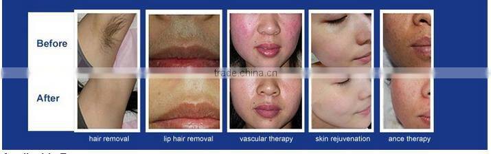 OPT(Optimal Pulsed technology) IPL technology treatment theory is that : intense pulsed light produces light and heat effect and photochemical effects on the skin, the deep collagen and elastic fiber skin rearranges and restores the skin elasticity, while enhances the vascular tissue functions, eliminatesfacial skin wrinkles and reduces pore shrink; additionaly, intense pulsed light can also penetrates the skin, is preferentially absorbed by the pigment group and vascular tissue selectivity;without destroying the normal skin,blood coagulation, pigment group and pigment cells are destroyed, decomposition, soas to achieve therapeutic effect of telangiectasia and pigmentation.