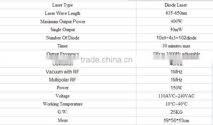 laser for fat reduction,use the 650nm soft laser to destroy the deep fat cells,broke the cell membrane,change the fat to triglyceride,then leave out the body,thanks to metabolism.The laser heat can Stimulate the subcutaneous dermal tissue collagen and elastic fibers hyperplasia,make the treated area skin tighten and elasticity Application: Intensive physicallipolysis to remove fat Excess fat cell melted Body slimming,cellulite reduction Smooth fatigue Remove obstruction from channels and collaterals Promote and accelerate the body's metabolism .