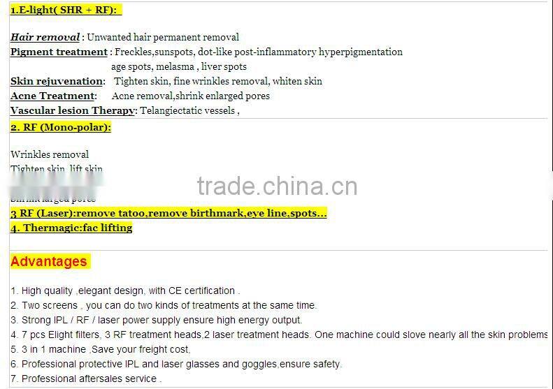 2016 High Quality Multi-function OPT&E-light Hair Removal Device ,Lipo Laser Tattoo Machine, Fractional Needle Therapy System