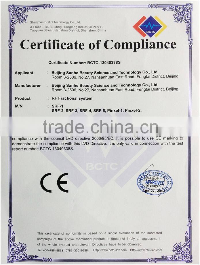 Sanhe Fractional rf Skin Tightening Machine/radio Frequency Machine Korea/ Face Lifting Beauty Equipment