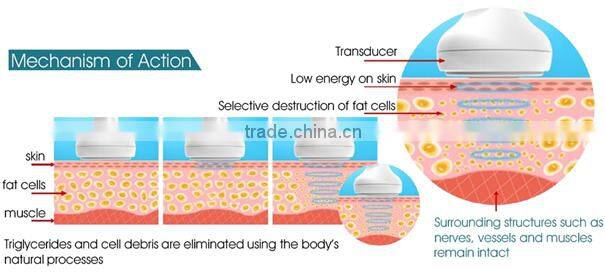 Use high energy ultrasound focusing the treatment position, so that the skin tissue create the thermal, and make high-speed friction cells to stimulate collagen. Such heat effect will not hurt the epidermis, because the treatment fast and direct access to the treatment site within 0-0.5 seconds, without touching the surrounding tissue and can be passed directly to the superficial tendon membrane system (SMAS), so it can be done firm skin while pulling the muscle layer, thin face up to the progressive effect