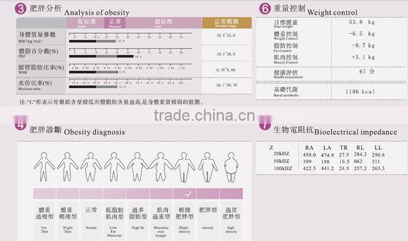 Test method | Multi-freqency bioelectrical impendance analysis(MFBIA) |