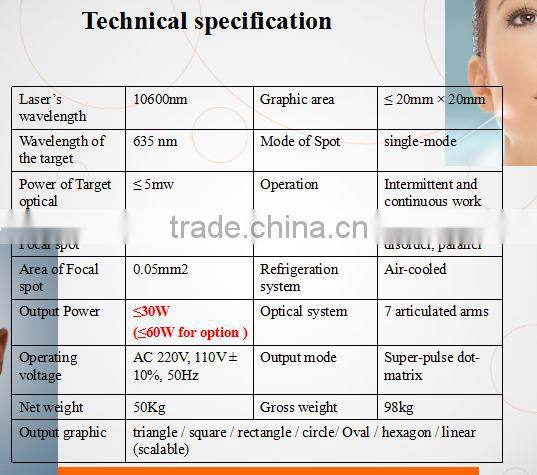 2.This machine use the RF Tube manufacturerd by Coherent America,the frequency can reach more than5000HZ,the high speed can work more efficiecnt and effectively,it is very good for the ultra pulse incision for the precise surgey,no blood,the treatment area is very clear,andless down time.